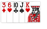 STRAIGHT : kombinasi kartu ini sama dengan STRAIGHT FLUSH, bedanya kalau STRAIGHT tidak memandang bunga, bunganya boleh bebas , misal : 4 ♠ - 5♥ - 6♦ - 7 ♣ - 8♦ atau 10♥ - J ♣ - Q ♠ - K♦ – As ♣